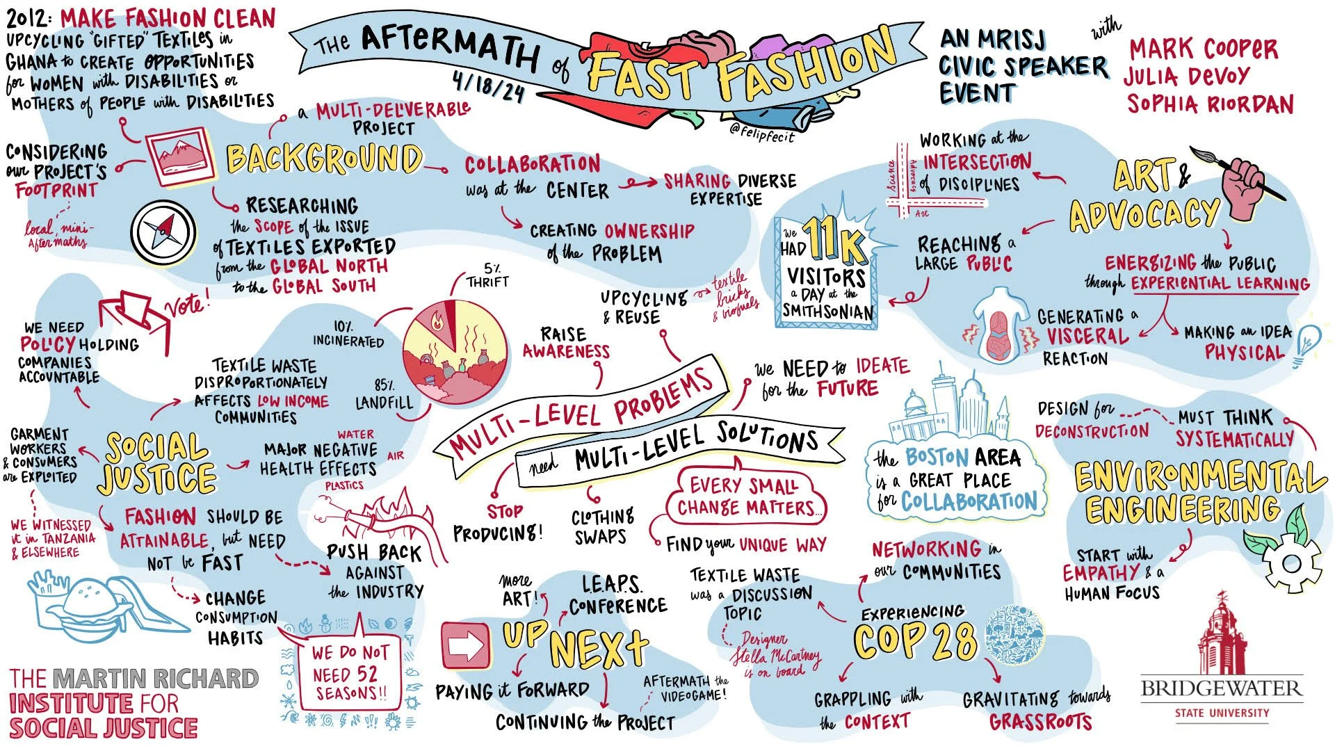 Make Fashion Clean (MFC or MFC Tie-Dye Inc.) is a 501c3 non-profit organization whose mission is to reduce global fashion pollution by upcycling textile waste and educating about pollution. MFC creates repurposed denim and tie-dye products out of textile waste sent to Ghana from the Global North in partnership with a non-profit community-based organization in Greater Accra, Ghana called The Matilda Flow Inclusion Foundation (The MFI Foundation). This upcycling partnership generates employment and job training in the creative economy for artisans who have been displaced by the global fast fashion and secondhand clothing industries. It also diverts textile waste from landfills, open-air dumps, and the environment to reduce the impacts of pollution. MFC also collaborates with the The Aftermath Learning Lab on research and art projects at the intersection of textile-related pollution, policy, education, environment, and health. Learn more at makefashionclean.org, or follow MFC on Instagram @makefashionclean.